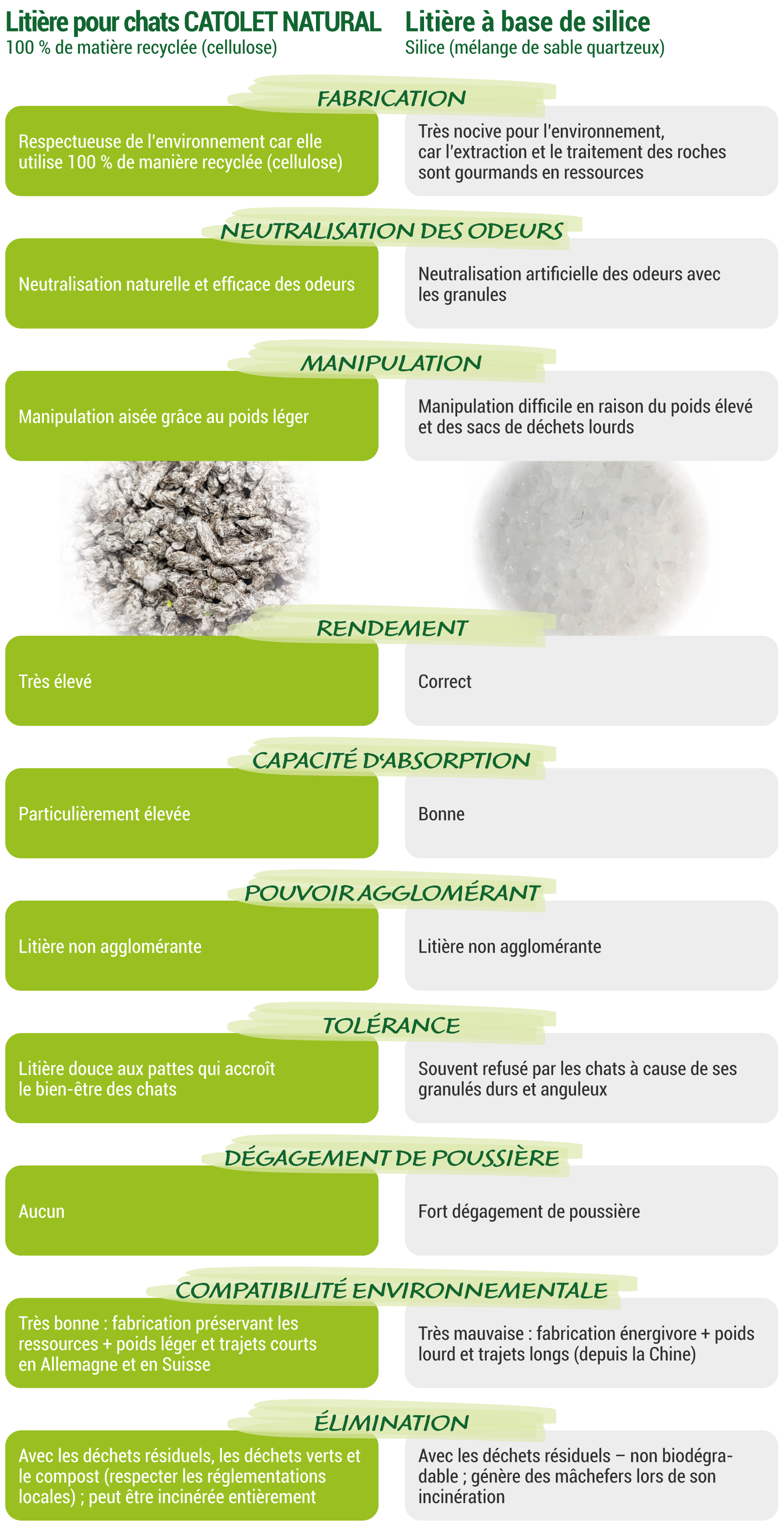 Comparaison avec la litière pour chats classique à base de silice